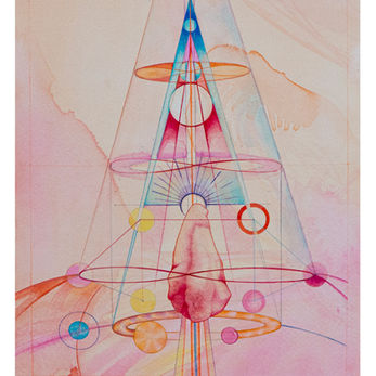 In this work, two female figures are intertwined within a larger, sacred structure: the Womb. This is not only the physical womb, but the Cosmic Womb—a universal matrix of creation and energy. The womb, in this context, becomes both a literal and symbolic portal, echoing the interconnectedness between body, spirit, and universe.